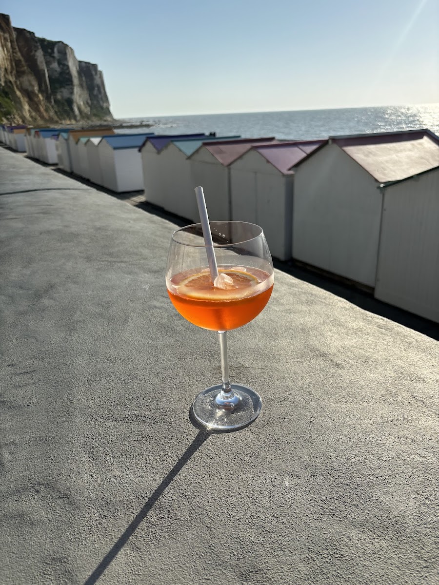 Après une longue ballade en vélo, le soleil couchant, un verre de vin nous semblait une chouette idée. Au Jerry’s snackbar, service gentil et accueillant, au bord de la mer, sur la digue Tréportoise: les frites de qualité Belge (soyons honnête, pas le cas partout en France ) avec un rosé et « La Goudale » au fut. Allez-y!